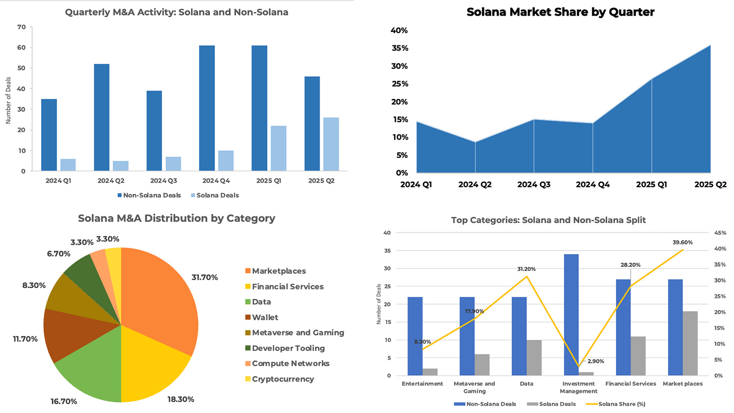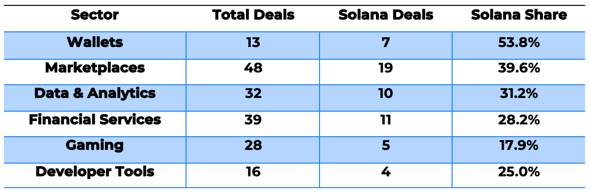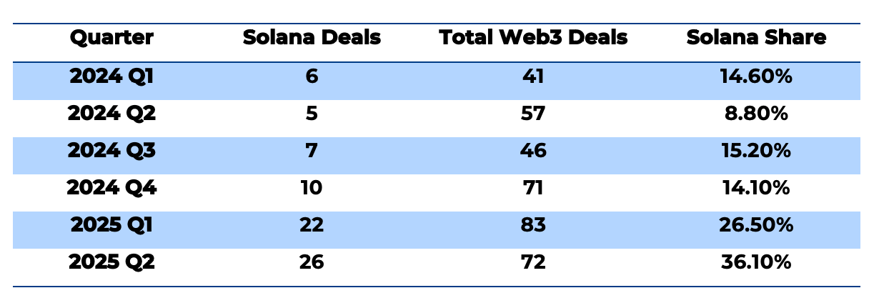 Looking at the raw numbers, Solana went from 28 deals in all of 2024 to 48 deals in just the first six months of 2025. That's not just growth—that's acceleration.